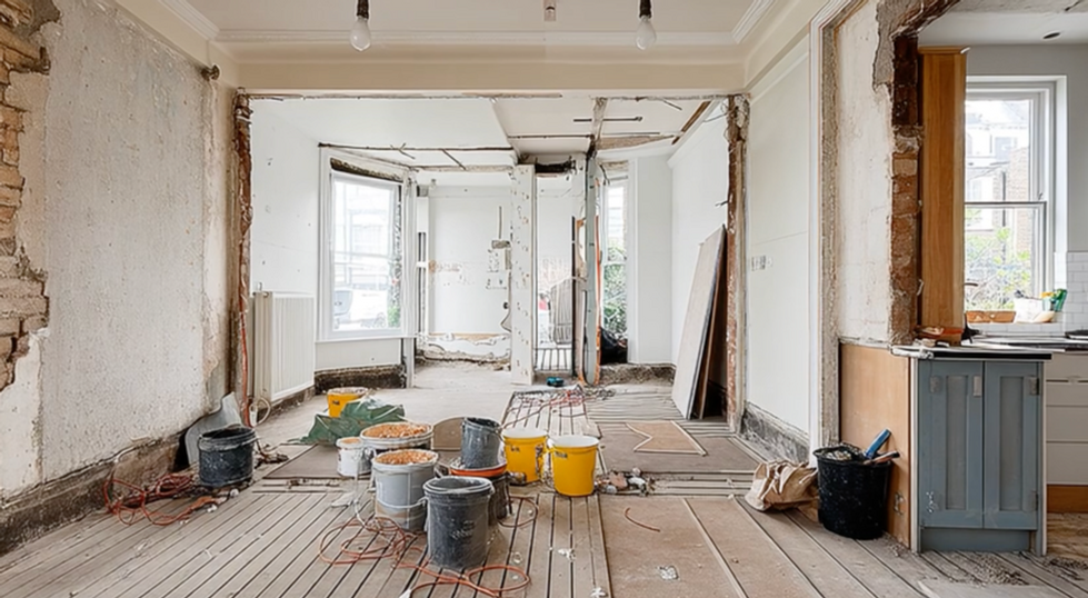 This project showcases the transformation of a residential property, bringing new life to both its interior and exterior. Inside, the space has been thoughtfully renovated into a bright, modern home, featuring an open-plan kitchen and living area centred around a striking marble island. Outside, the two adjoining brick houses — now finished with bold black and classic red doors — reflect the balance of contemporary style and traditional charm that runs throughout the renovation.